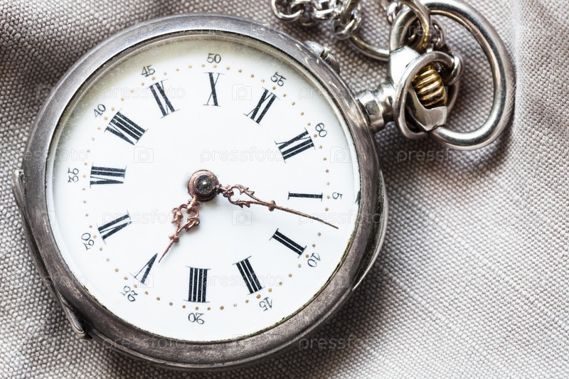 Античные карманные часы на текстильном фоне