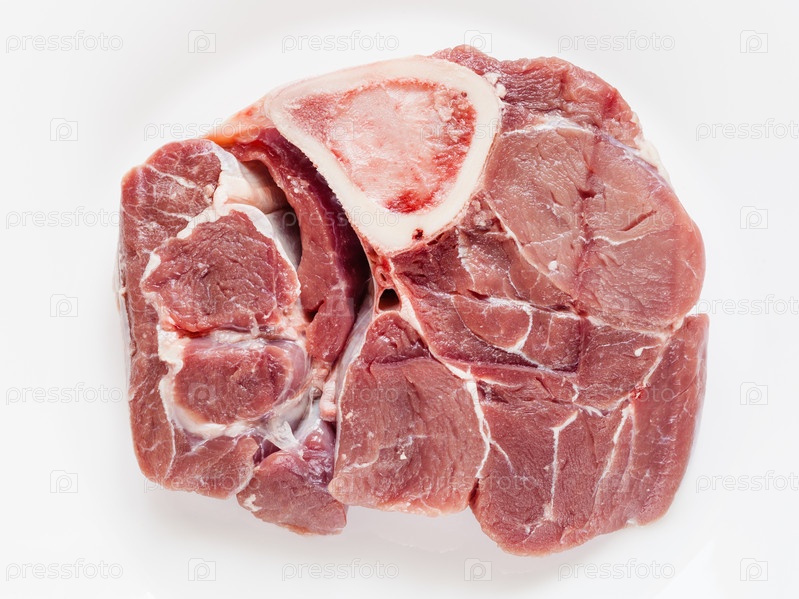 Сырое телячье мясо с костным мозгом на белой тарелке