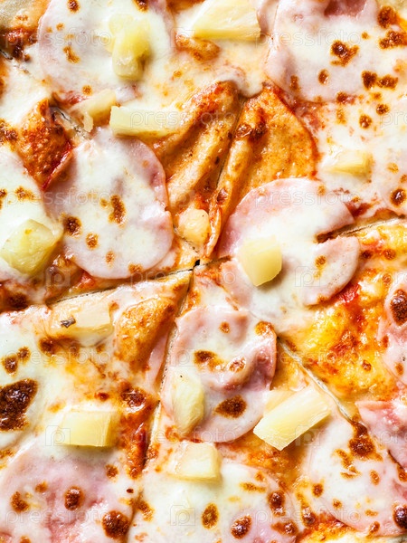 Поверхность пиццы с ветчиной и ананасом