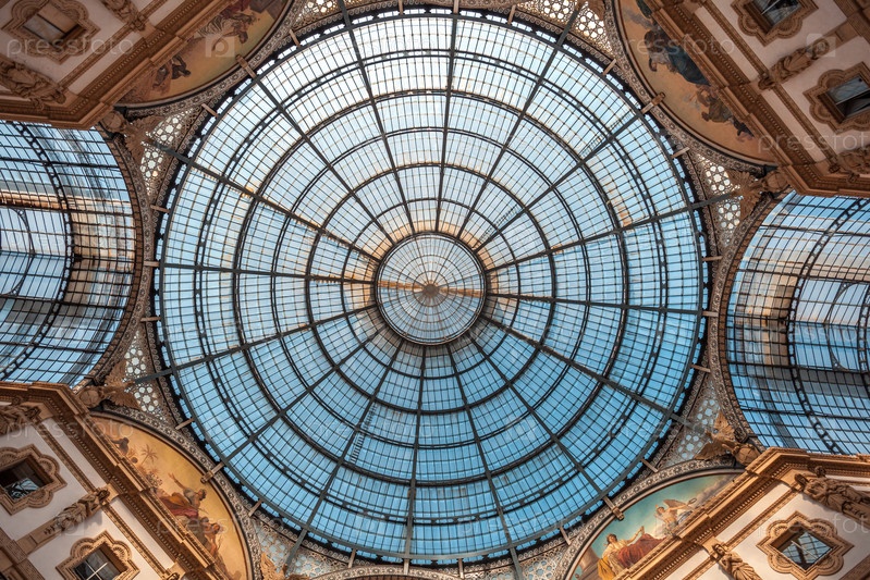 Интерьер галереи Витторио Эммануэля II, площадь Дуомо в центре Милана