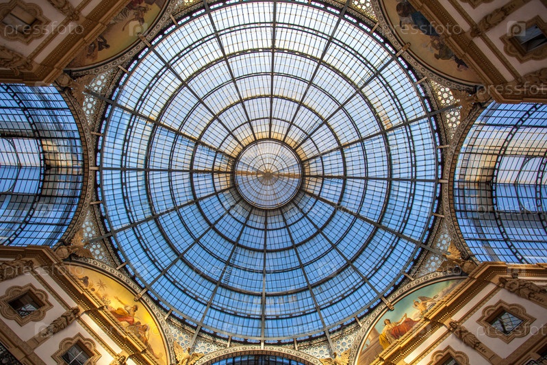 Интерьер галереи Витторио Эммануэля II, площадь Дуомо в центре Милана