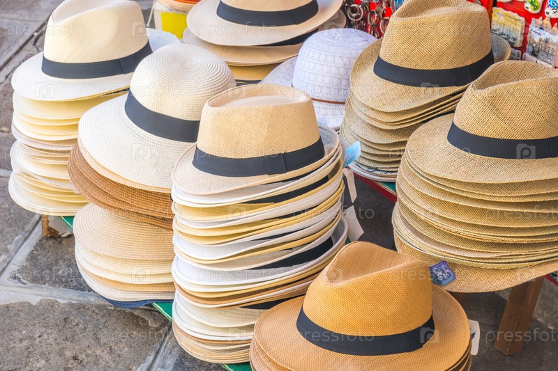 Различные головные уборы на прилавке рынка в Венеции, Италия
