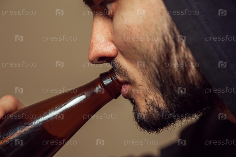 Ближайшее изображение молодого пьяного мужчины с бутылкой пива