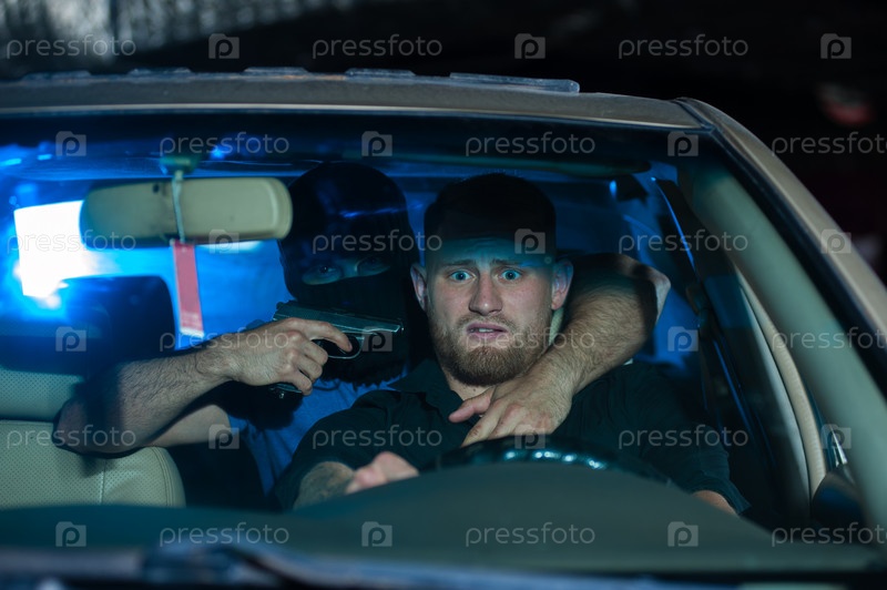 Автограбитель угрожает владельцу автомобиля пистолетом