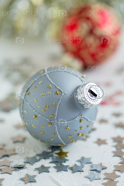 Серебряный рождественский шар с золотым орнаментом