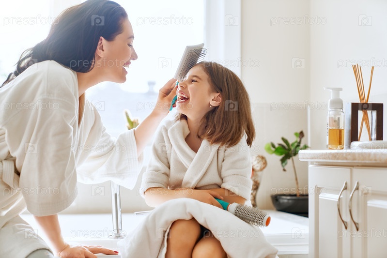 Мать и дочь расчесывают волосы
