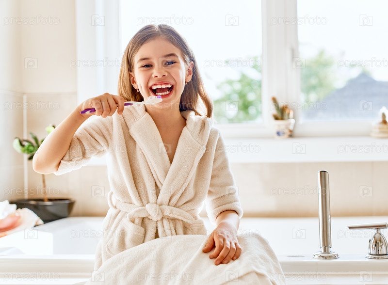 Девушка чистит зубы