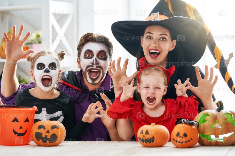 Семья празднует Хэллоуин