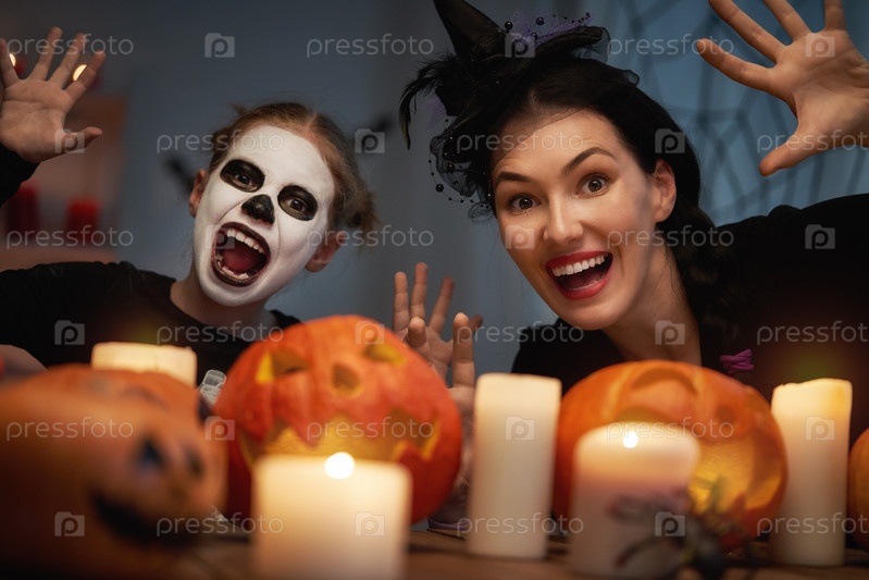 Семья празднует Хэллоуин