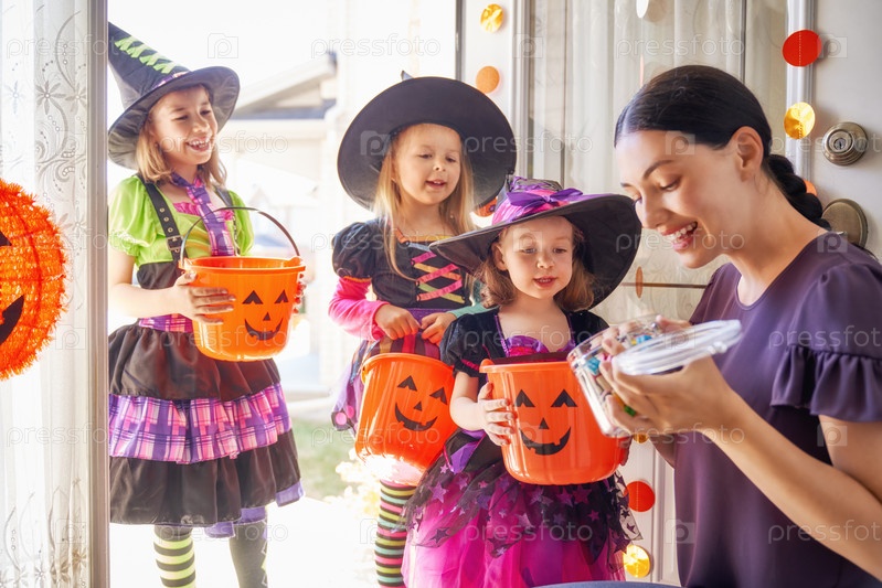 Семья празднует Хэллоуин