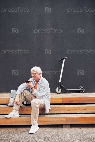 Старший мужчина отдыхает в активном городе