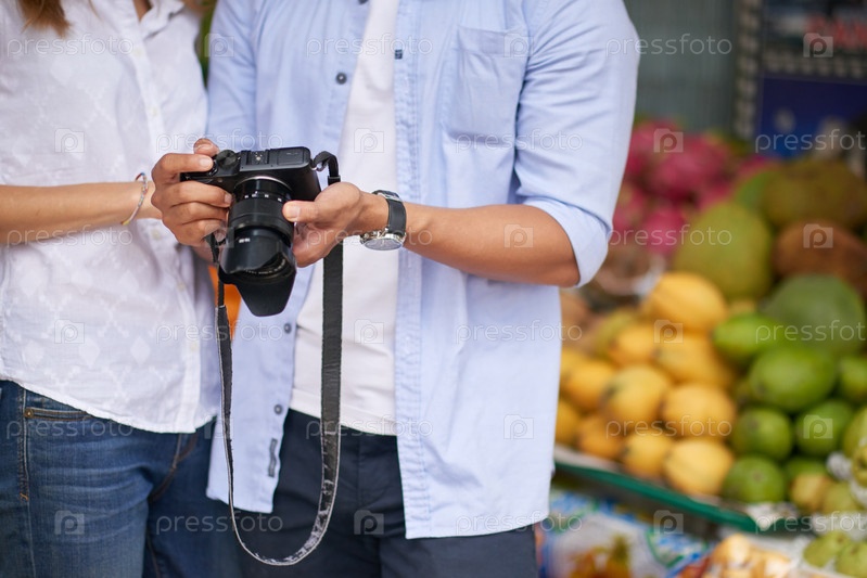 Туристы проверяют фотографии