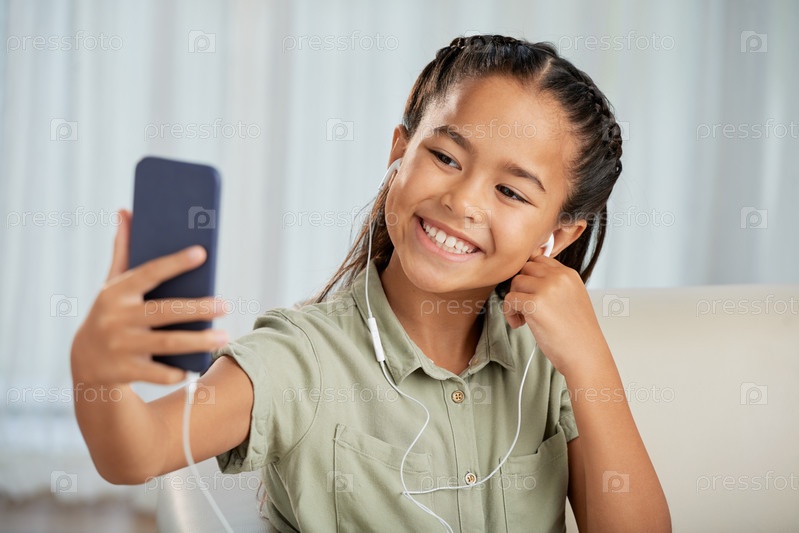 Девушка делает селфи по телефону