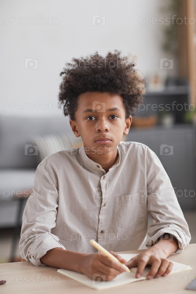 Афроамериканский мальчик-подросток учится дома