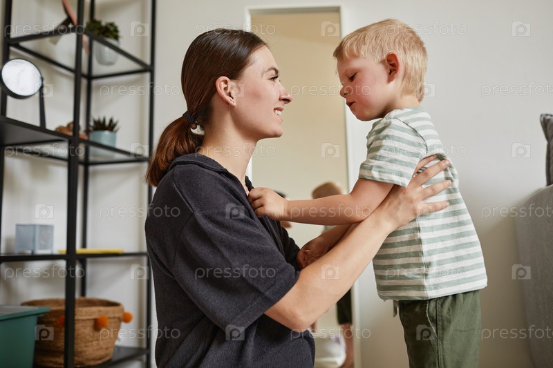 Осторожный сын, регулирующий рубашку матери