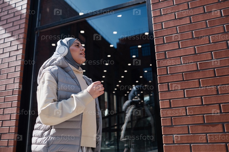 Активная ближневосточная женщина, бегущая на открытом воздухе