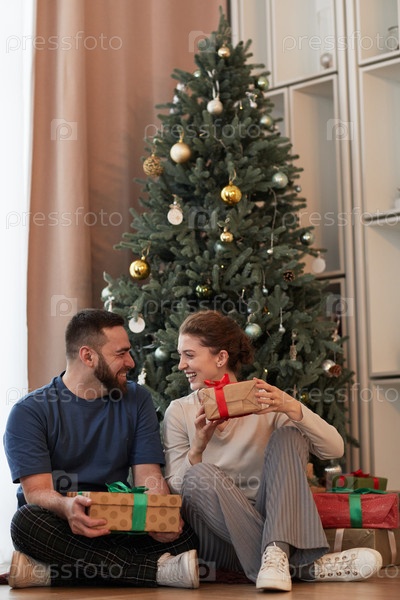 Взволнованная пара празднует Рождество