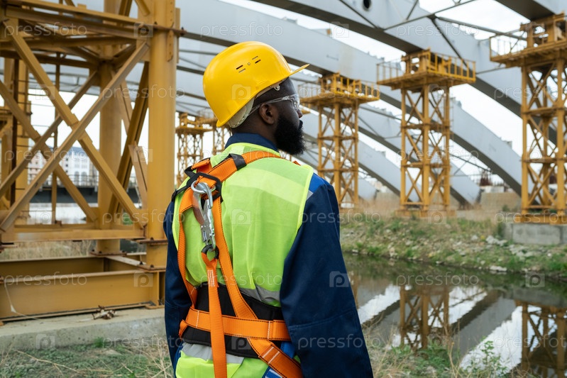 Молодой африканский инженер стоит на стройке