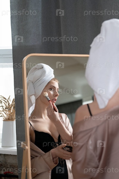 Женщина, делающая макияж дома