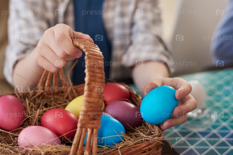 Пасхальные яйца в корзине
