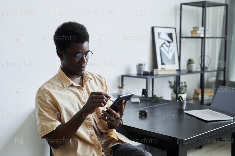 Мужчина работает онлайн на планшетном компьютере