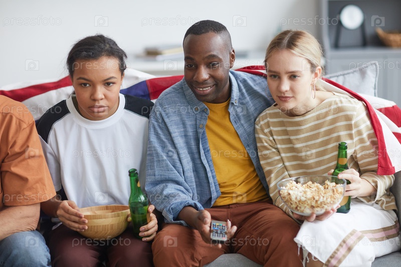 Молодые люди смотрят спорт дома