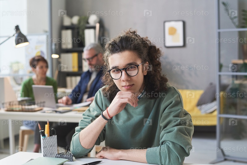 Молодой сотрудник, работающий в офисе