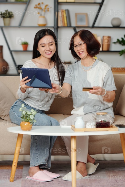 Мать и дочь покупают онлайн