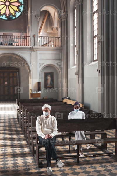 Люди в масках в церкви