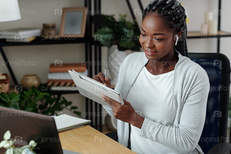 Женщина смотрит веб-семинар онлайн