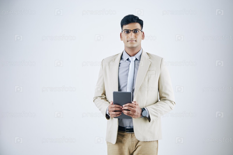 Уверенный в себе и серьезный молодой индийский бизнесмен