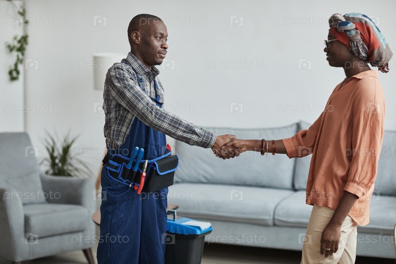Афроамериканская женщина, пожавшая руку мастеру