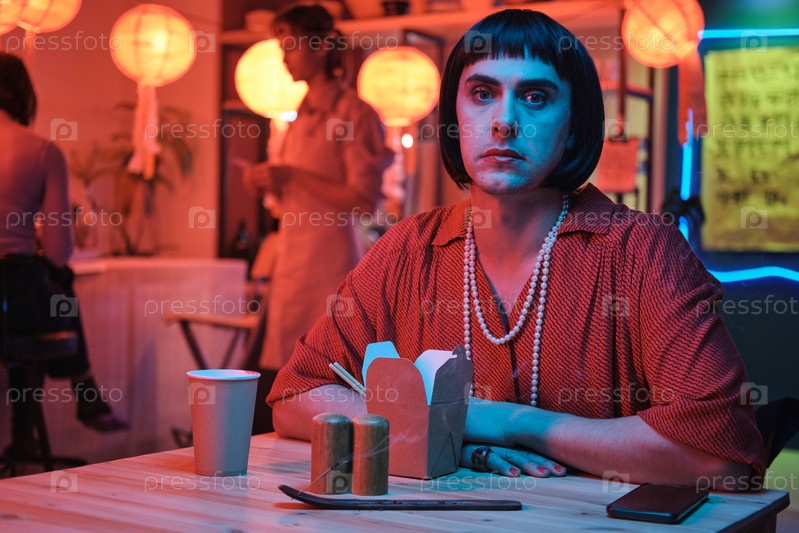 Трансгендеры сидят за столом в баре