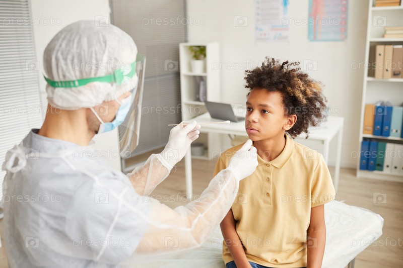 Афроамериканский мальчик, проходящий тест на COVID в клинике