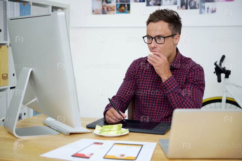 Концентрированный молодой графический дизайнер