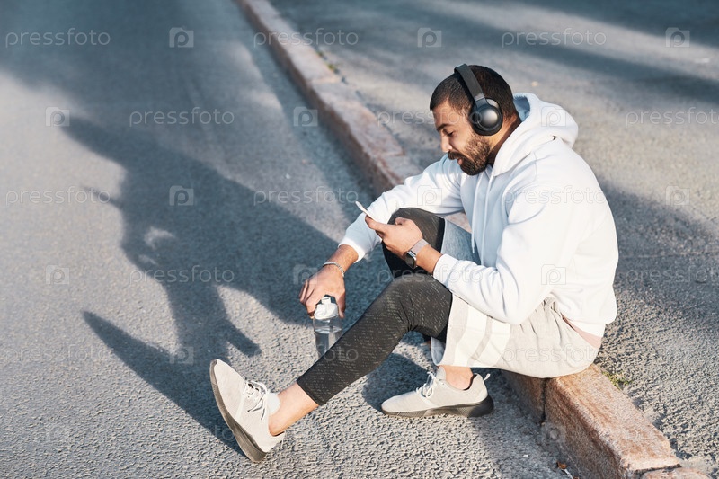 Спортивный парень сидит на обочине