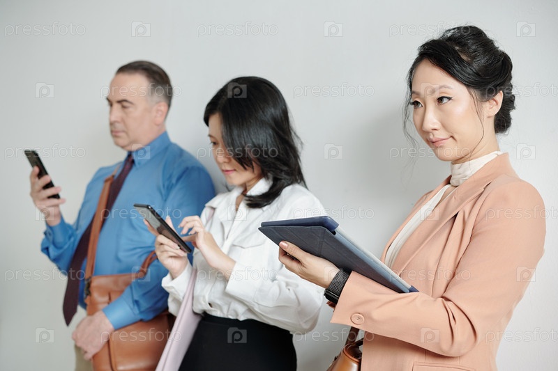 Недовольная бизнесвуменка стоит в очереди