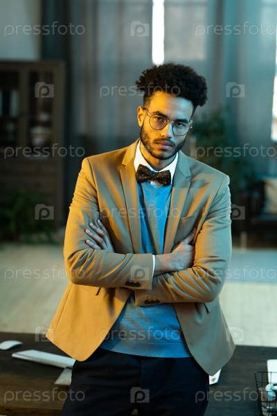 Портрет серьезного стильного бизнесмена в темной комнате