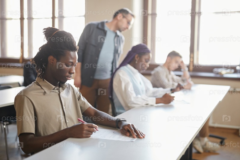 Группа людей, сдающих экзамены в колледже