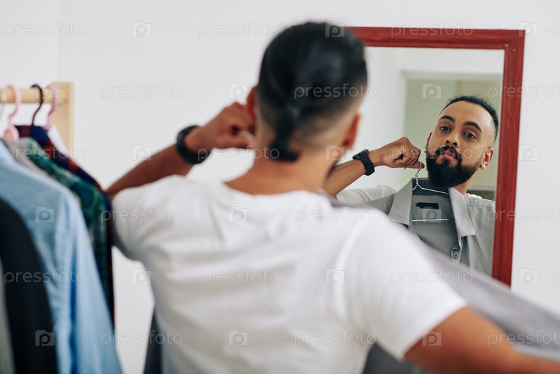 Мужчина выбирает рубашку для работы