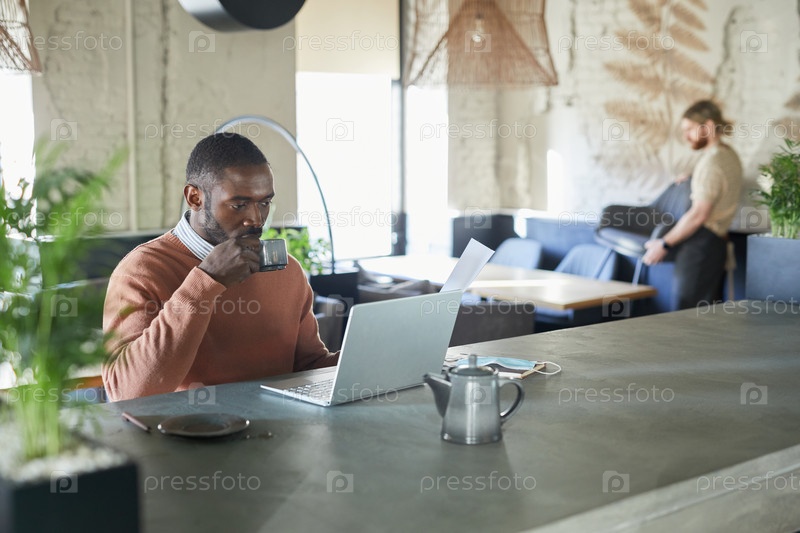 Бизнесмен, работающий в кафе африканского утра