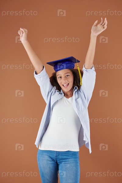 Портрет счастливой девушки в выпускной шляпе