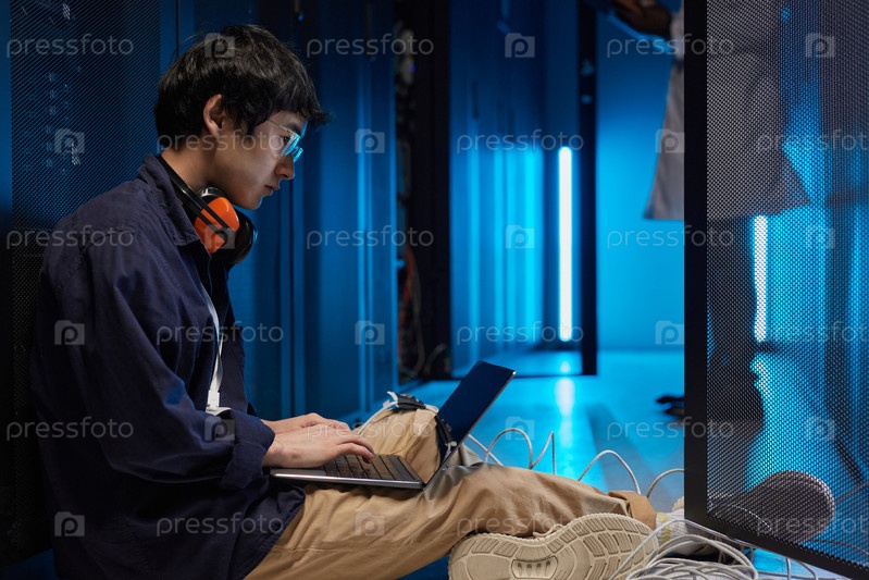 Сетевой инженер в серверной комнате