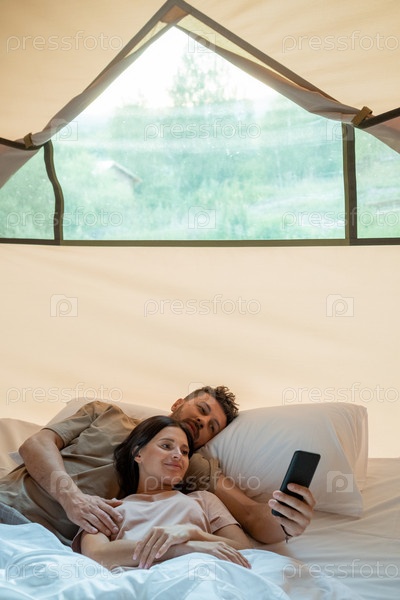 Молодая спокойная пара со смартфоном делает видеозвонки