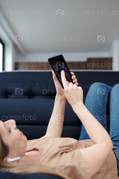 Женщина, слушающая музыку дома