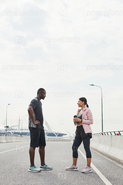 Спортивная пара стоит на улице
