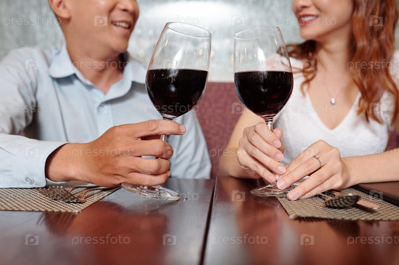 Влюбленная пара пьет красное вино