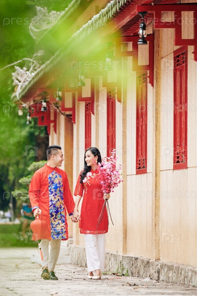 Пара ходит на лунный Новый год
