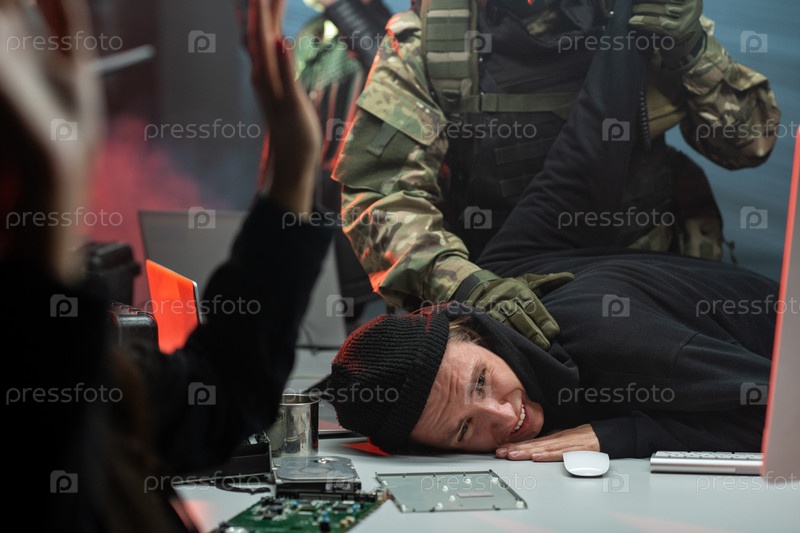 Сетевой преступник захвачен мужчинами в камуфляжном наряде