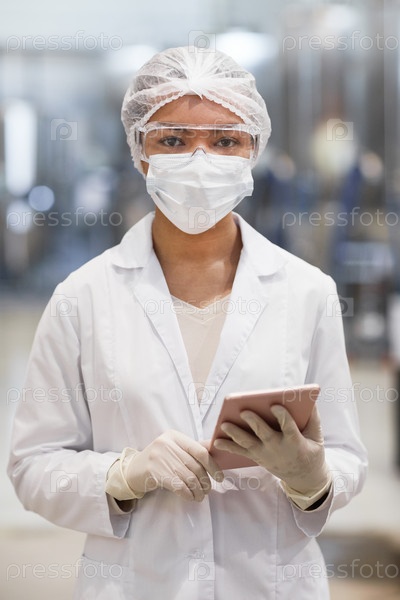 Молодая женщина-работница на фармацевтической фабрике